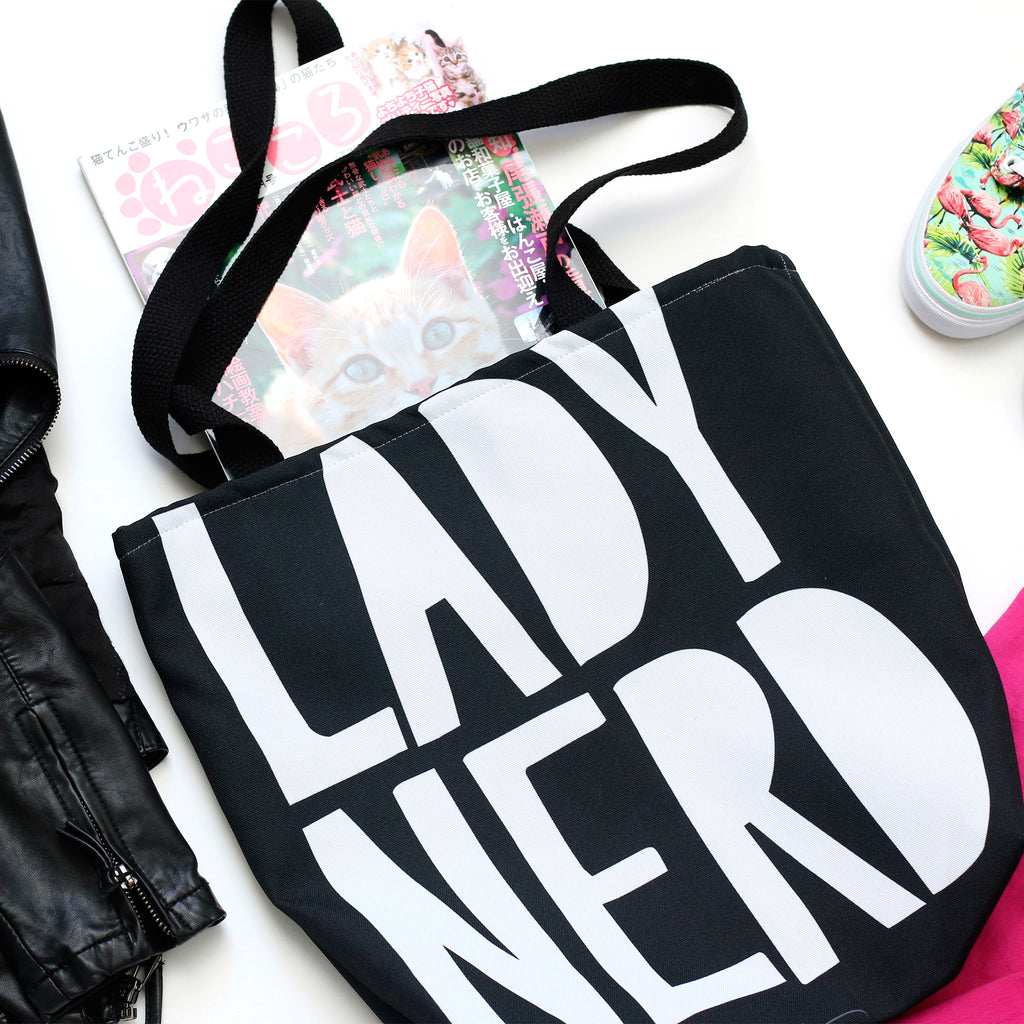 My point is that you can carry a lot of stuff in the Lady Nerd Tote, and you can do it while simultaneously saying to the world, "Yes, I am a lady nerd!"